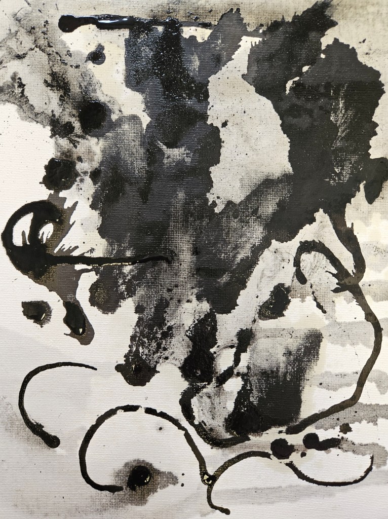 Acrylic ink, isopropyl alcohol, white vinegar, and WD-40 on canvas board